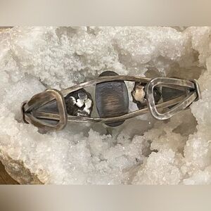 Beautiful handmade sterling and natural Damele turquoise cuff with cast succulent pieces. Cast using real pieces of the plant. Gorgeous pieces of green natural Damele turquoise. Will fit a 6-6.5” wrist best. All handmade by Appaloosa Designs. One of a kind. NWOT.