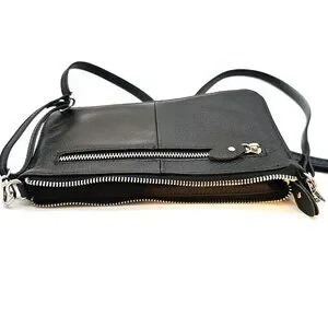 Black Quilted Leather Crossbody Purse Clutch – Small Organizer Bag – Multi-Pocket – Pre-Owned