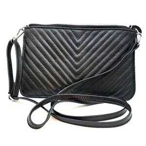 Elevate your everyday look with this stylish black crossbody bag made from quilted leather. Designed for both fashion and function, this compact yet versatile bag works as a crossbody, shoulder bag, or clutch. The front features a striking chevron quilted texture, while the back is smooth with a handy zippered pocket.