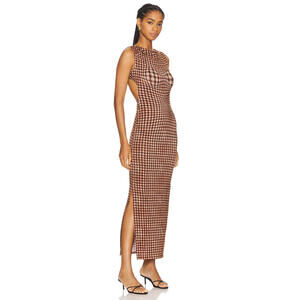 Revolve Miaou Selena Dress Warped brown Plaid open back size M NWT