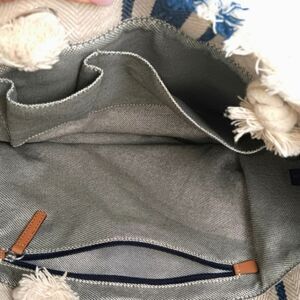 VINCE CAMUTO Ulla Tan Blue Women’s Striped Tote Bag Rope Handle Nautical Coastal