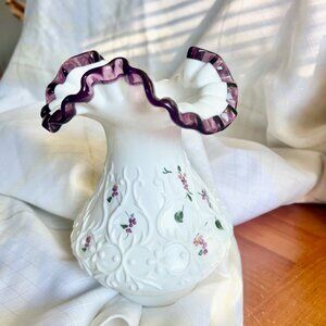 Vintage Fenton Milk Glass Spanish Lace Vase, Hand Painted Vintage Fenton vase