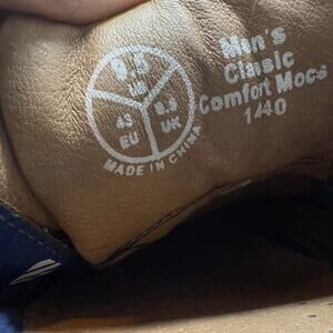 West Marine Men's Shoes. In the color brown. Tagged size men's 9.5. These men's West Maine shoes feature a classic comfort moc style, leather upper, low heel and a non slip outsole. Style number 1440. In excellent preowned condition with minimal signs of wear.