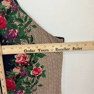 Stylish dress with vibrant floral design. Features a navy base with red and pink flowers and unique printed lace design. Creates a beautiful silhouette! Perfect for casual outings or the office.