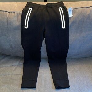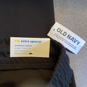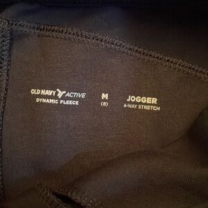 Old Navy dynamic fleece, 4-way stretch, zippered pockets, breathable jogger pants size 8. (Medium). Black. 22” stretchy waist. Inseam measures 22”.