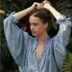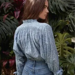 DOEN Rose Top in China Blue Mini Earl Floral Print XS like new