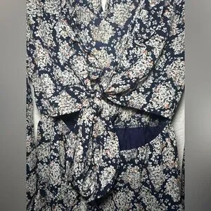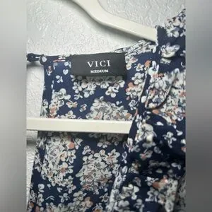 VICI Posy Floral Front Knot Tie Tiered Mini Blue Size Medium Women Dress