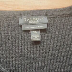 Talbots merino wool black cardigan sweater size XL ruffle sleeve ball buttons