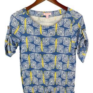 Lilly Pulitzer Raquel dress in women’s size small. Short, gathered sleeves. Rope drawstring waist. 73% silk 27% cotton. Hand wash. Style 78487 Great condition!