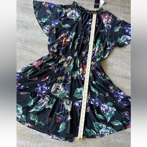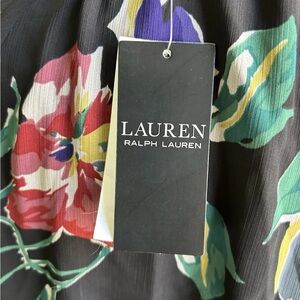 Lauren Ralph Lauren $165 Floral Crinkle Georgette Dress sz 12 Black Label NEW with tags