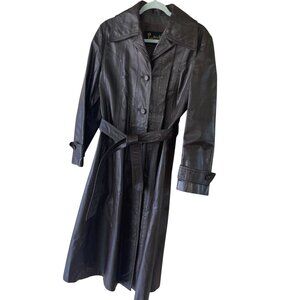 Imperial Vintage Womens Trench Coat Size 10 Brown Glossy Leather Belted