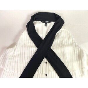 WHBM Tiered Pleats Tank Top Womens Size 14 Off White Black Necktie Lined NWOT