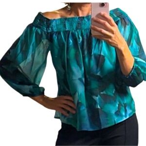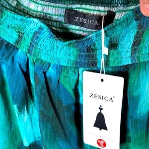 Chic women's blouse featuring a blend of green and teal hues. Perfect for adding a touch of elegance to any outfit.