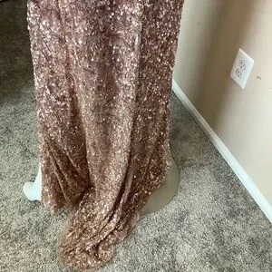 MacDuggal Rose Gold Sequin Evening Gown with Slit and Train