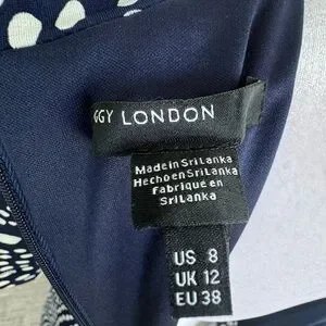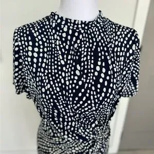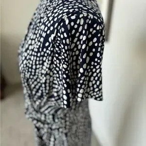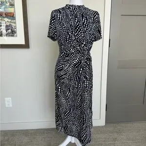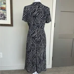 Maggy London Navy white Polka Dot Wrap Dress 8 Fit & Flare Twirl