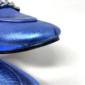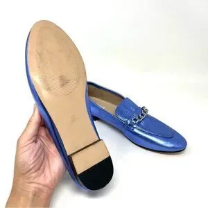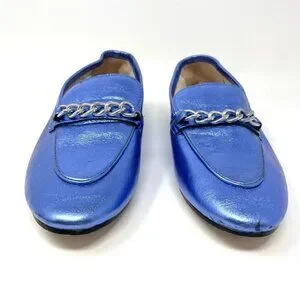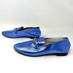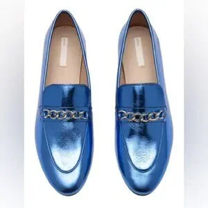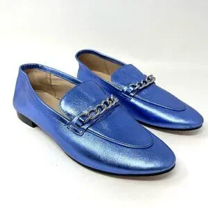 H&M Premium Selection Metallic Blue Leather Loafers Size 39
