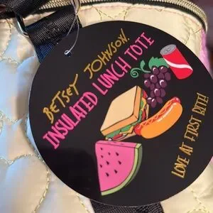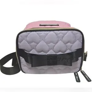 • Charming Betsey Johnson Pastel Insulated Crossbody Shoulder Bag with Heart Quilted Design.