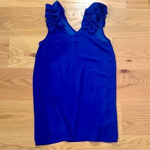 ENTRO Blue Ruffle Dress - Crepe fabric, Flowy, Feminine, Sleeveless, V-Neck