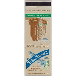 Front Strike Matchbook Cover Blue Bonnet Hotel San Antonio TX Texas