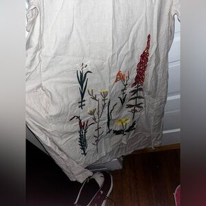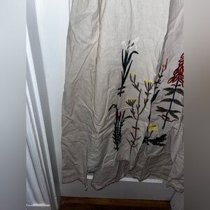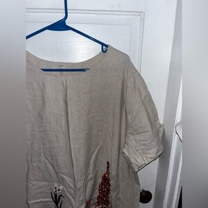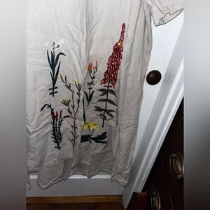 Bohemian dress for women,unique floral embroidered cotton linen tunic sundress, hi low hem, round neck, dress with loose hem and waist, great for pregnant women.