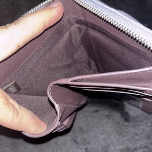 This beautiful quilted light purple wallet is so soft and features a pristine deep purple interior with multiple compartments. Zipper closure, silver hardware