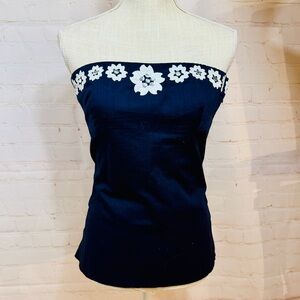 J. Crew Navy Blue Strapless Top with White Floral Flower Accents S 6