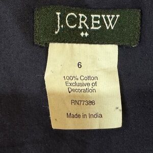 Strapless top in navy blue by JCrew. Features white floral accents along the neckline. Zips on side. In great condition: no holes, no stains, and from a smoke free home. Size is women’s six. Flat dimension is 19 inches length. Thanks!