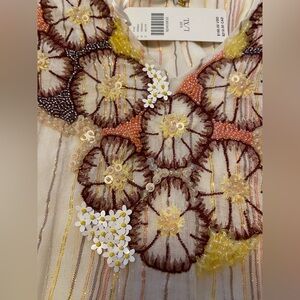 Anthropologie Embroidered Beaded Kaftan Kimono Coverup Dress tan see through with stripes in copper shimmer and brown Cotton Size L/XL