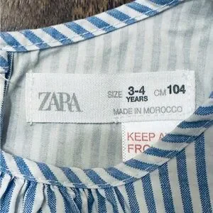 Zara toddler girl ruffle sleeveless blouse. Blue and white pinstripes. Ruffles along side and hem. Back has cute button details all the way down. Excellent condition.