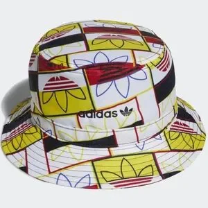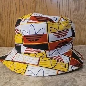 Add a splash of color with this Adidas bucket hat. Features bold red, yellow, and black and blue patterns. Ideal for sunny adventures.