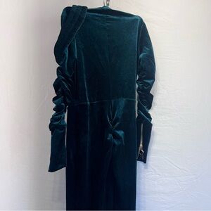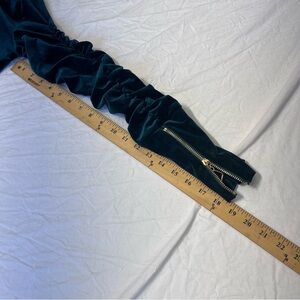 Chicme Velvet Zipper Ruched Longsleeve Jumpsuit Elastic Waistbelt Green Size M