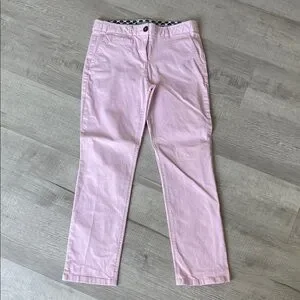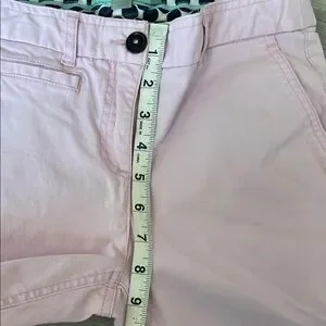 Stylish pink khaki pants featuring a navy polka dot trim on the inside. Perfect for adding flair to your wardrobe. Gorgeous color. Stretchy fabric. Comfortable fit. Perfect for petites. Pre-used, great condition. Amazing for spring and summer!
