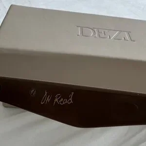 Chic DEZI sunglasses with a bold taupe frame. Perfect for a stylish look.