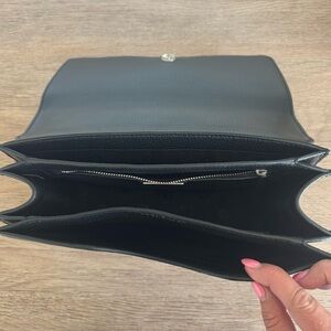 The adjustable chain can be worn doubled over the shoulder or long for crossbody.