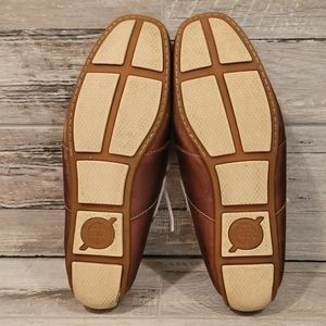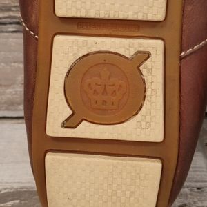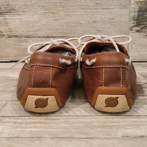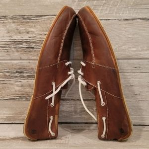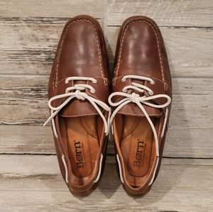 Stylish brown leather boat shoes. Comfortable and durable design. Perfect for casual wear.