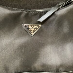 Chic Prada shoulder bag in sleek black. Features a stylish chain strap. Perfect for any occasion.