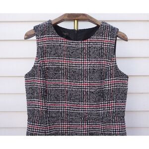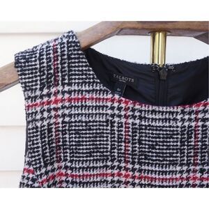- Chic classic black, red, and white houndstooth wool-blend sleeveless round neck shift dress that lands at or just under knee by Talbots