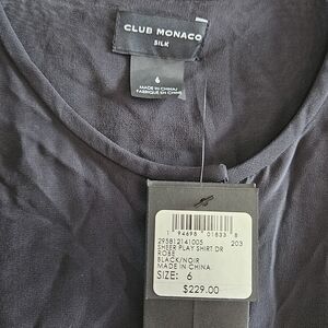 NWT 100% Silk Club Monaco Shirt Dress Size 6 Black