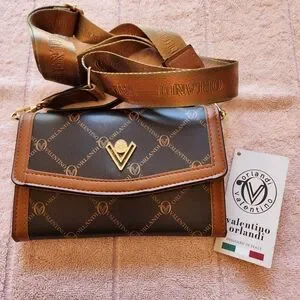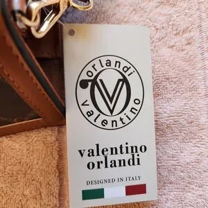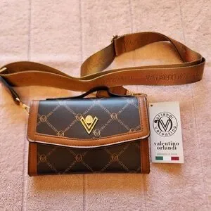 Chic shoulder bag by Valentino Orlandi. Features a sophisticated brown and black color scheme with signature logo accents. Ideal for elevating any outfit.