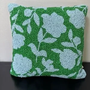 Kate Spade target beaded front toss pillow. Green and Blue Floral 12x12
