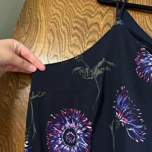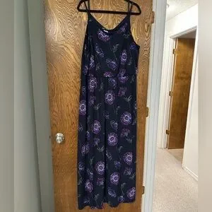 Maurices Brand. SIZE 2X. Black with a multicolored floral pattern. Tank top style. Polyester & Spandex blend. Maxi length.