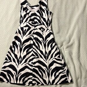 Stylish zebra print dress. Sleeveless design. Perfect for any occasion.