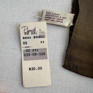Vintage Anne Klein for the Vera Companies silk scarf – new with original store tag and never worn, stored flat. Features a striking gold paisley pattern on charcoal with a solid brown block and Anne Klein signature. Measures approx 11" x 50", 100% silk, made in Japan—classic rectangular shape with hand-rolled edges.