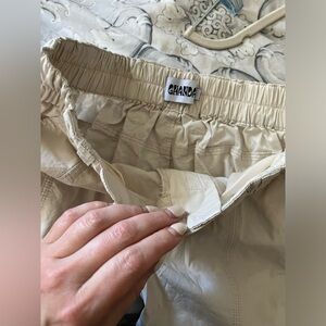 Ghanda 6 cargo S XS pants cream 100% cotton ivory stretch waist pockets utility