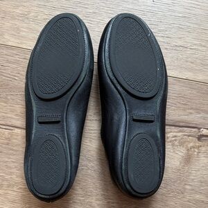 Sleek black leather flats with signature logo detail. Comfortable and stylish for everyday wear.