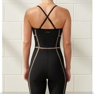 NWT Abercrombie & Fitch YPB Corset Seamed Active Romper Onesie in Black/Tan - M