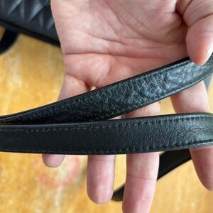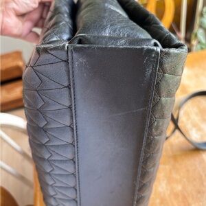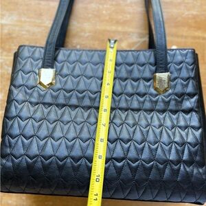 Black Italian Leather Shoulder Bag, labeled Camille on the inside. The outside is in great condition, she is gorgeous!!! A little wear and tear on the bottom.