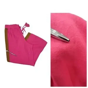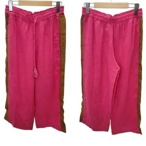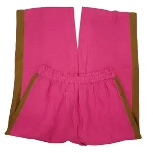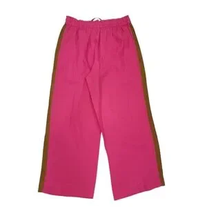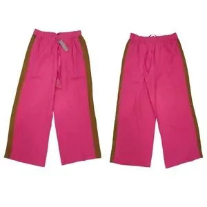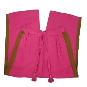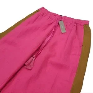 NWT J.Crew Linen Drawstring Wide Leg Pants Pink Brown Tux Stripe Women’s XS