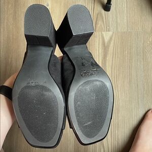 Elegant black suede mules by Steve Madden. Features a comfortable block heel. Ideal for versatile styling.