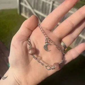 Elegant silver bracelet featuring brown beads and a charming moon pendant. Perfect for adding a touch of sophistication to any outfit.